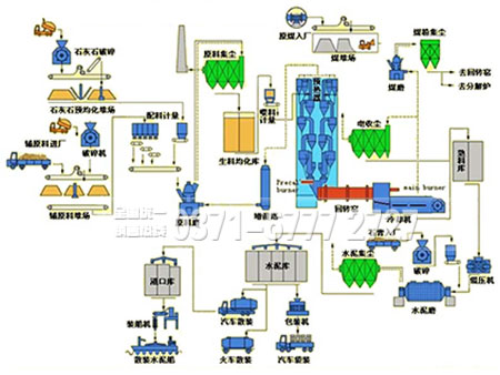 干法水泥回轉(zhuǎn)窯的主要工藝流程是以石灰石和粘土為主要原料,經(jīng)破碎、配料、磨細(xì)制成生料,喂入水泥窯中煅燒成熟料,加入適量石膏(有時還摻加混合材料或外加劑)送入干法水泥回轉(zhuǎn)窯進(jìn)行碾磨,在回轉(zhuǎn)窯內(nèi)燃燒產(chǎn)生熱量,熱量通過氣體傳導(dǎo)或者輻射對物料進(jìn)行加熱,同時隨著窯體按照設(shè)計的斜度和轉(zhuǎn)速不停轉(zhuǎn)動,原料也在窯內(nèi)周期性的翻滾前進(jìn),從而把原料由進(jìn)料端輸送到出料端。